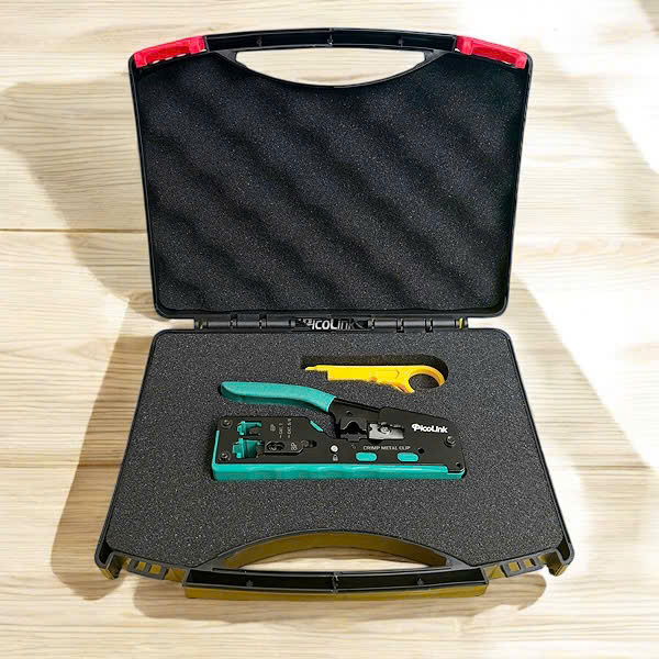 Kìm bấm mạng Cat6A Cat7 Picolink : bấm 6p 8p có kèm hộp bảo vệ , an toàn , chắc chắn , đẹp lắm vô cùng tiện lợi